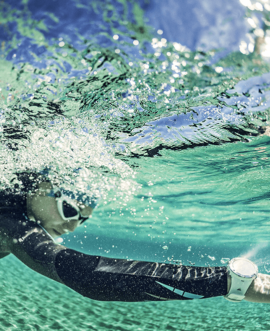 Suunto 还推出了首款游泳运动耳机Suunto Aqua, 以出色的防水性能、离线音乐及运动检测功能,让你无论在泳池还是开放水域,都能尽情享受音乐。